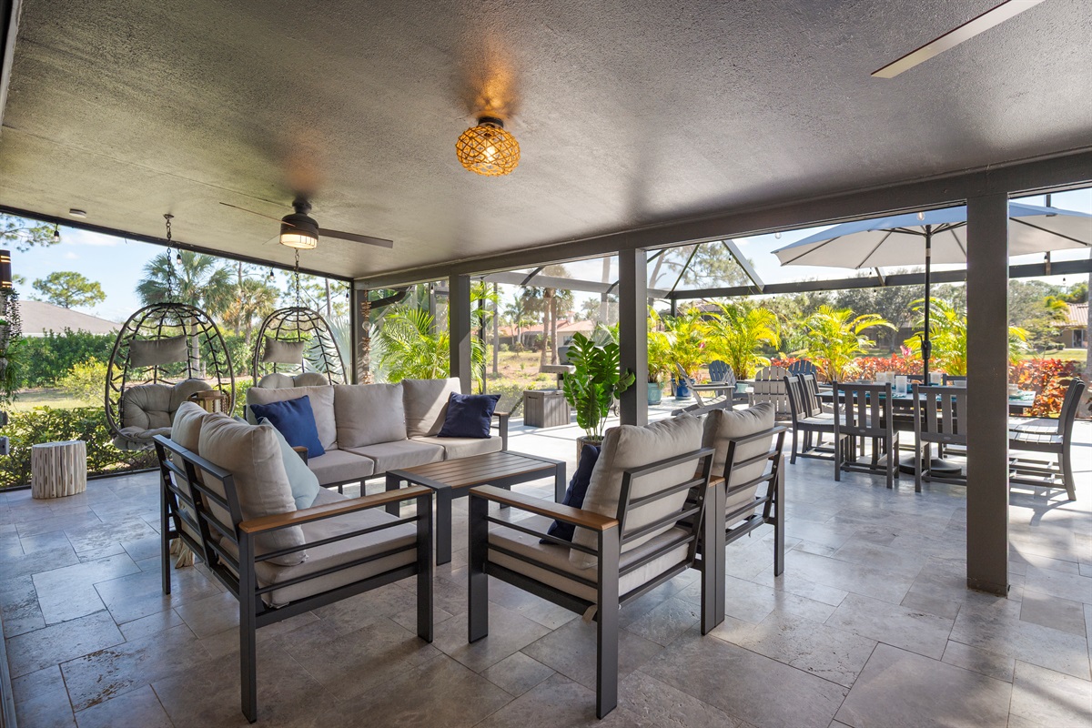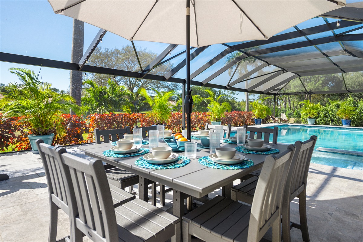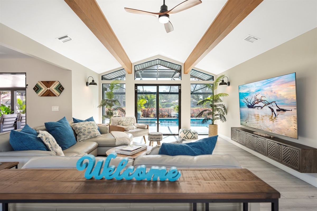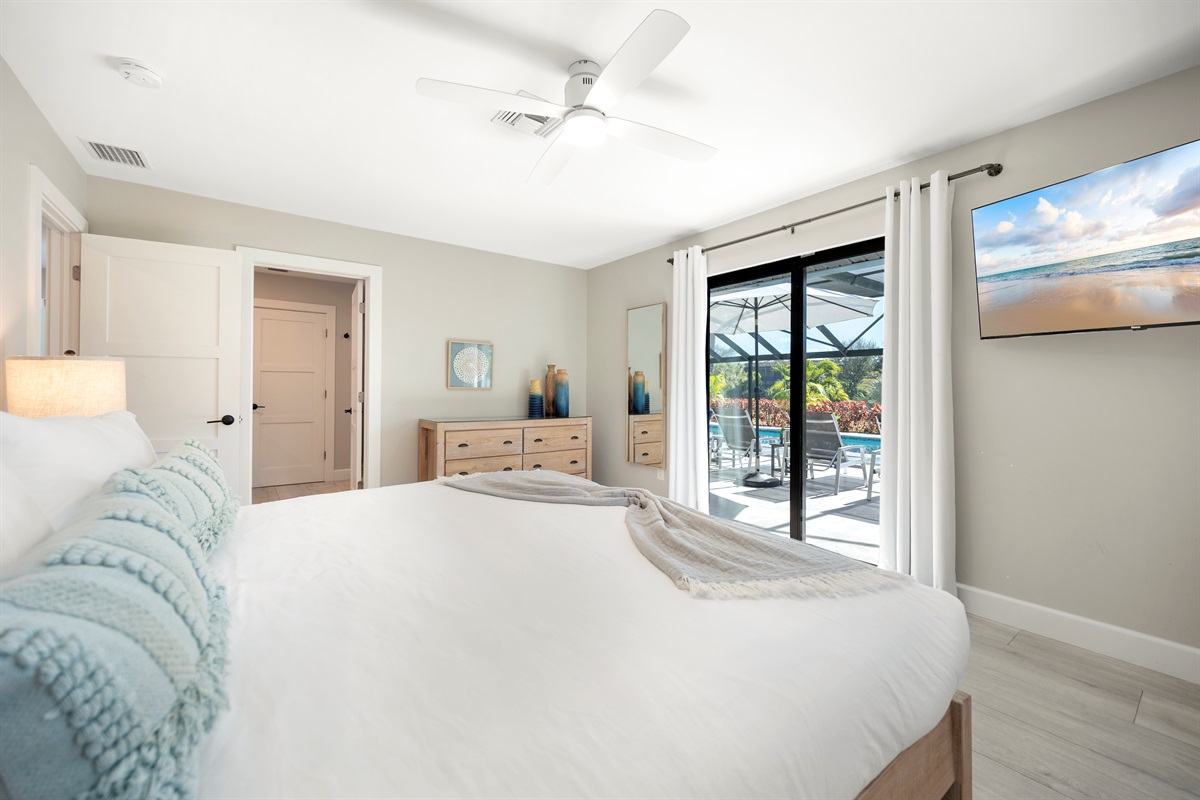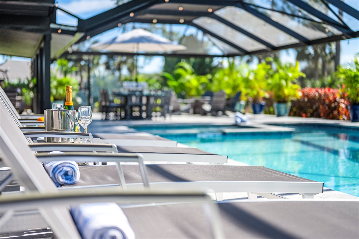 As soon as you step foot in the luxury pool villa, you're welcomed by a very stylish yet highly comfortable open-plan living area. It is designed and decorated in an elegant coastal manner that compliments the breathtaking vacation setting of Naples, FL! The fully equipped kitchen and two dining areas open onto the entertaining living room, setting the tone for many memorable evenings. Plenty of natural light coming through the large windows and doors makes the whole villa very bright during the entire day. Retreat to four comfortable bedrooms, which feature 5☆-resort comforts that allow you to rest after an exciting day of adventuring throughout Naples. But wait! The best is yet to come! Step outside to the spacious and enclosed pool area equipped with luxury amenities for ultimate relaxation.